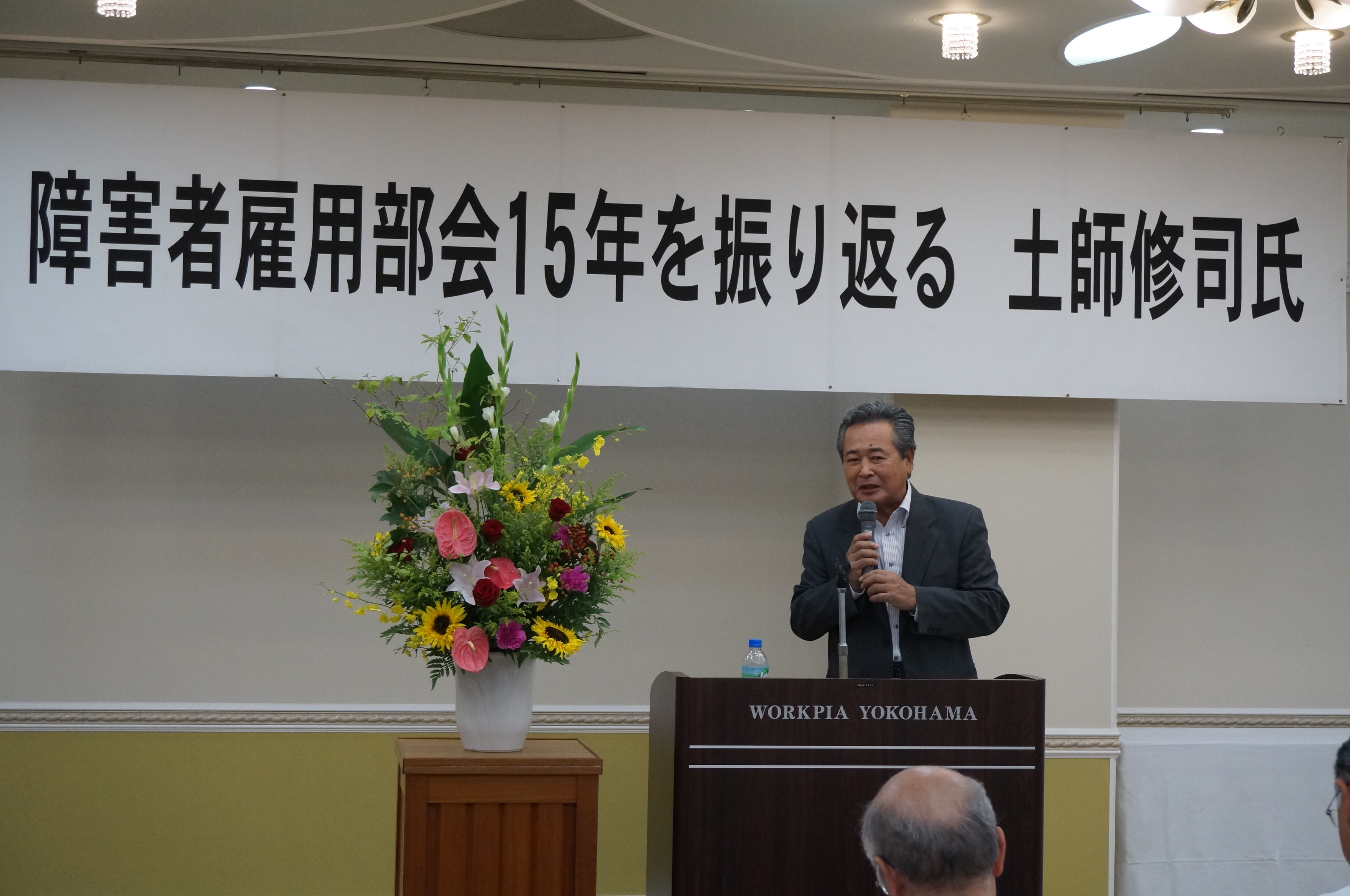 7月27日(水)にワークピア横浜にて、「障害者雇用部会15年を振り返る」と題して土師修司前理事長の講演会と囲む会(パーティー)を開催しました。